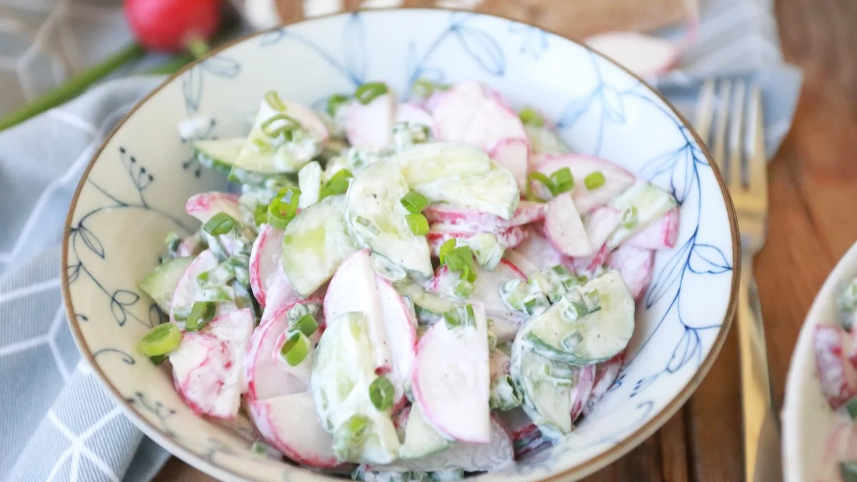 Редиска настільки цікава і смачна, що чудово поєднується з іншими овочами та молочними продуктами. Найкращий приклад – цей салат з редискою, огірком і йогуртом.