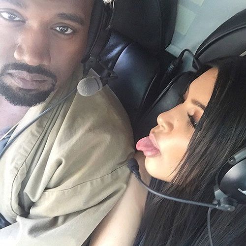 Естественно, Ким просто не могла не сделать селфи во время полета. На фото звезда реалити-шоу высунула язык, когда Канье смотрел прямо в объектив.