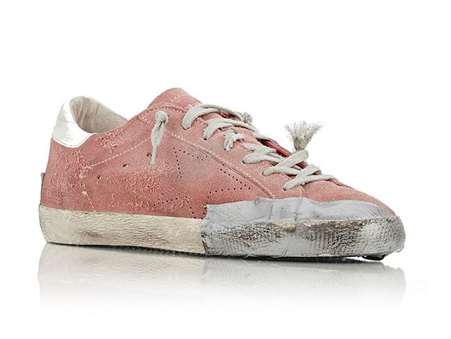 Бренд преміум класу Golden Goose представив оригінальну модель взуття - сильно зістарені кеди вартістю у 585 доларів. Кеди виглядають не досить солідно,враження ніби їх старанно передавали з покоління в покоління, при чому нещадно носили кожного дня. Крім сильних потертостей та брудних плям, на кедах приклеєний скотч та надірвані шнурки. Кеди можна придбати в американському магазині класу люкс Barneys. З цього приводу у соц мережах з`явився жарт, що у таких кедах в Barneys вас не пустять. Незважаючи на неоднозначну реакцію людей, кеди знайдуть своїх прихильників. Адже стиль бомж-стайл, як ніколи, набирає своєї популярності.