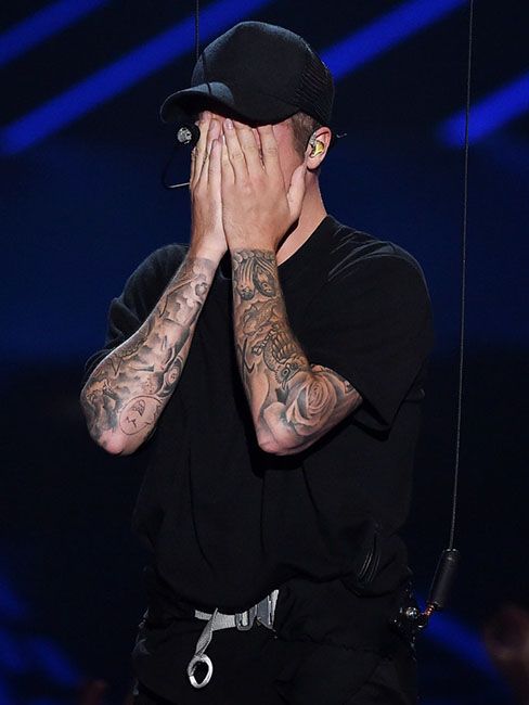 Джастин Бибер продемонстрировал полный спектр своих эмоций, когда он выступил на сцене во время вручения наград MTV в Лос-Анджелесе. Певец исполнил свою новую песню, "Что вы имеете в виду" (What do you mean). Когда он завершил свое выступление, Бибер стал плакать. В то время как толпа приветствовала его, Джастин закрыл лицо руками, потом наклонился, пытаясь отдышаться, качая головой.