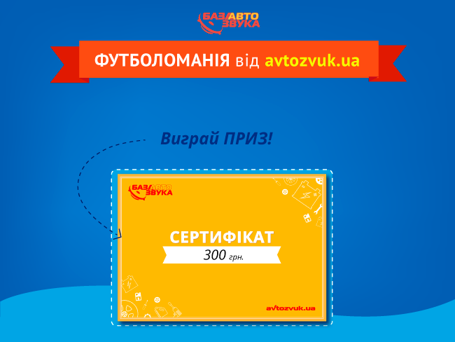 До 08.07.2016 телефонуй по буднях о 9.15 за номером 044-201-11-00, слухай прикольні питання про футбольне Євро, давай правильні відповіді й отримуй сертифікат на 300 гривень. Скористатись ним можна буде в мережі магазинів База Автозвуку або на сайті: avtozvuk.ua