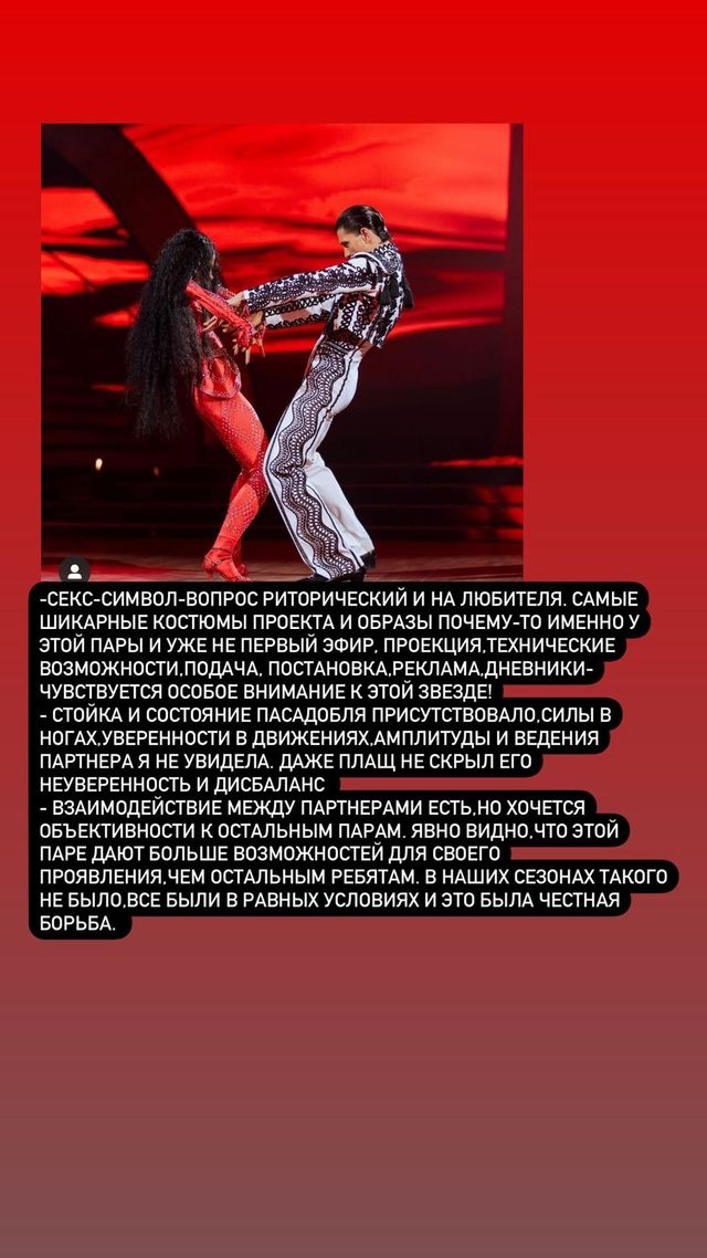 У своїх Instagram-Stories Гвоздьова розкритикувала останній виступ MELOVIN і Лізи Русіної, які виконували ча-ча-ча. На думку Ілони, дівчина погано впоралася з завданням.