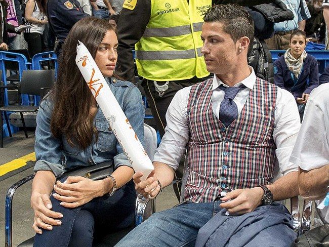 Криштиану Роналду и его знойная возлюбленная Ирина Шейк посетили баскетбольный матч Евролиги между «Реал Мадрид» и ЦСКА.