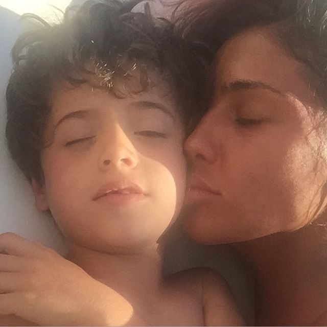 Мамина любовь: красавица Санта Димопулос с сыном