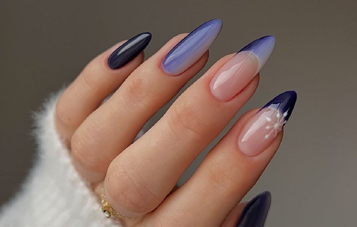 Звичайно ж, на Новий рік одними із найпопулярніших відтінків є сріблястий, золотистий та зелений. Та цього сезону майстри рекомендують звернути увагу на відтінок "зоряної" ночі - темно-синій в поєднанні з чисто-білим. Вишуканий градієнт, який завжди працює.