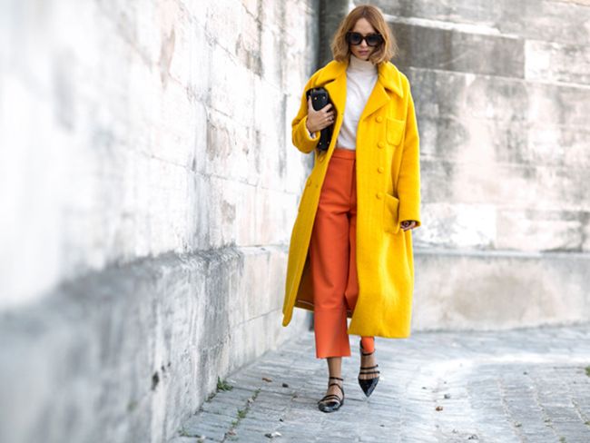 Модний стріт-стайл: яскраве пальто.