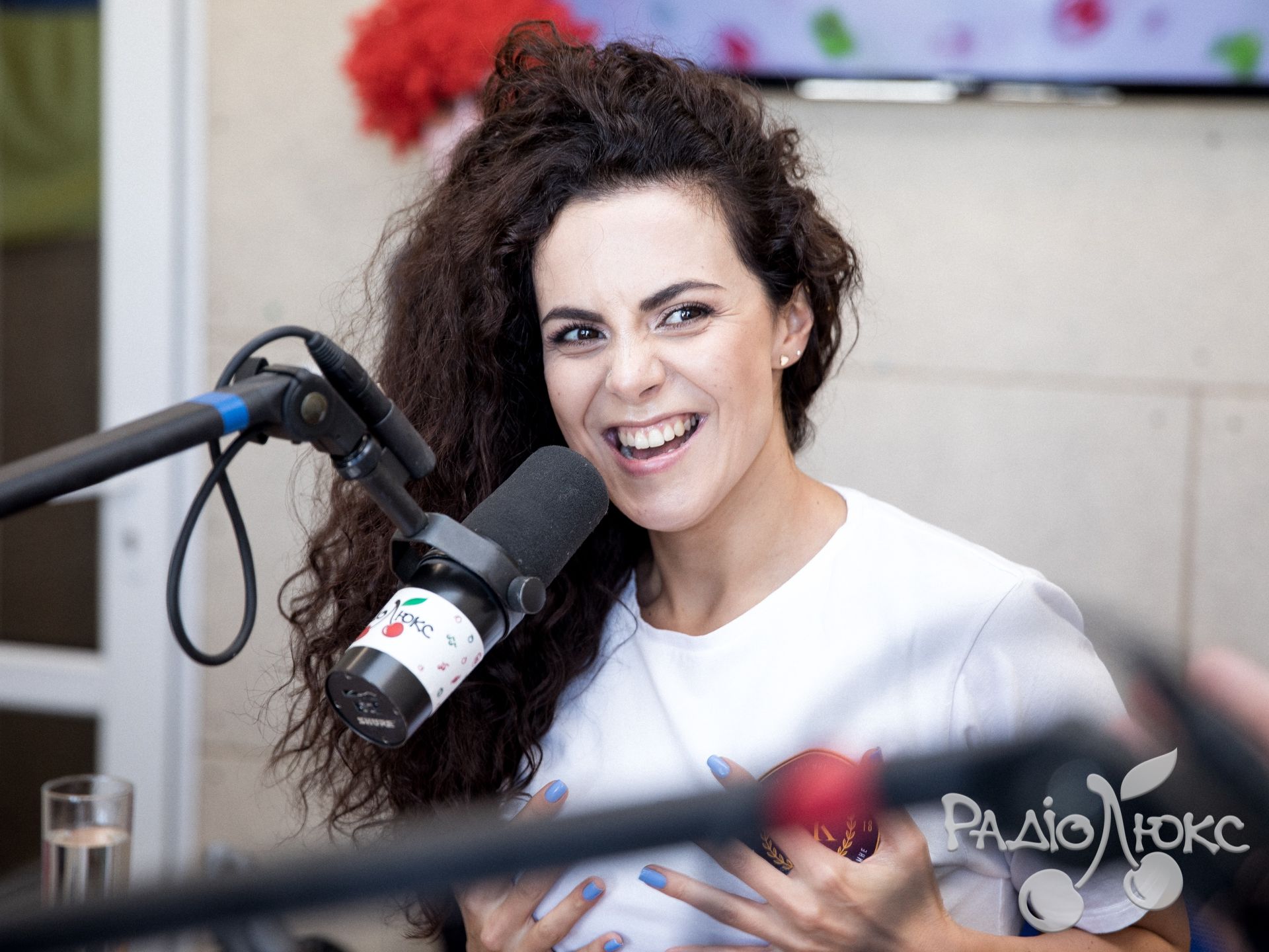 Красуня NK Настя Каменських недавно випустила новий хіт - пісню українською мовою "Тримай". І ось Настя прийшла в гості до Люкс ФМ, заспівала пісеньку, та ще й потанцювала разом з приколістом Славою Дьоміним.