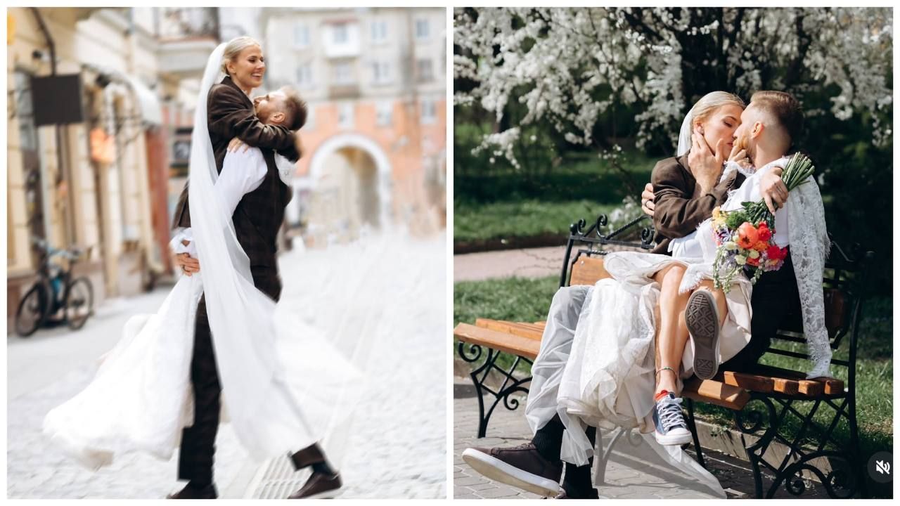 До речі, Кравець сама склала свій барвистий весільний букет. А от замість незручних туфлів на підборах віддала перевагу кедам.