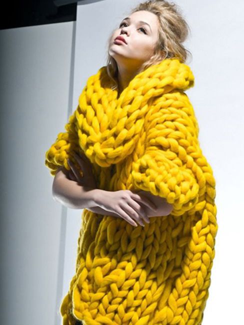 Желтый обьемный свитер