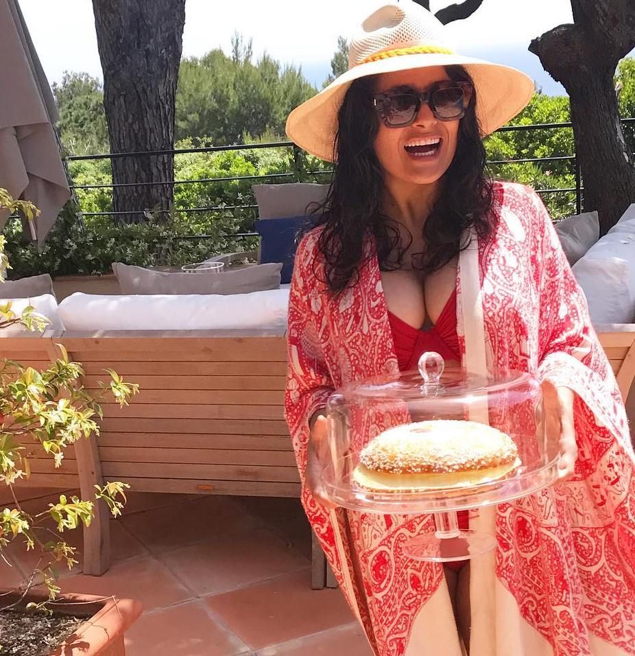 Хайек решила поделиться хорошим настроением со своими подписчиками в Instagram, куда запостила несколько свеженьких фото из отпуска. Селебрити опубликовала фото лазурного берега, экзотической природы, а также ошеломила снимком своей роскошной фигуры в купальнике.