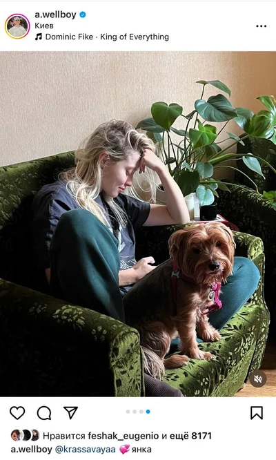 На одной из фотографий Антон и Яна нежятся в постели, а на другой — девушка целует бойфренда в щечку. Также певец поделился милым снимком избранницы, на котором она сидит в кресле вместе с домашним питомцем.