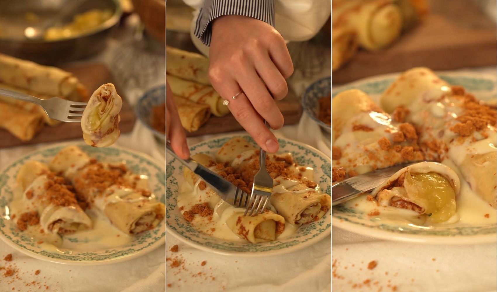 Блины с карамелизированными яблоками и заварным кремом: уютный рецепт для медленных осенних утренников