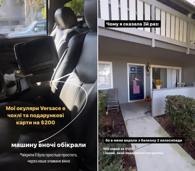 У Шаманской украли брендовые очки Versace и подарочные карты на 200 долларов. До этого с переднего двора у журналистки украли велосипед за 135 долларов и велосипед, подаренный ее сыну. А еще раньше в квартиру женщины кто-то вломился и устроил беспорядок. Вот так непруха.