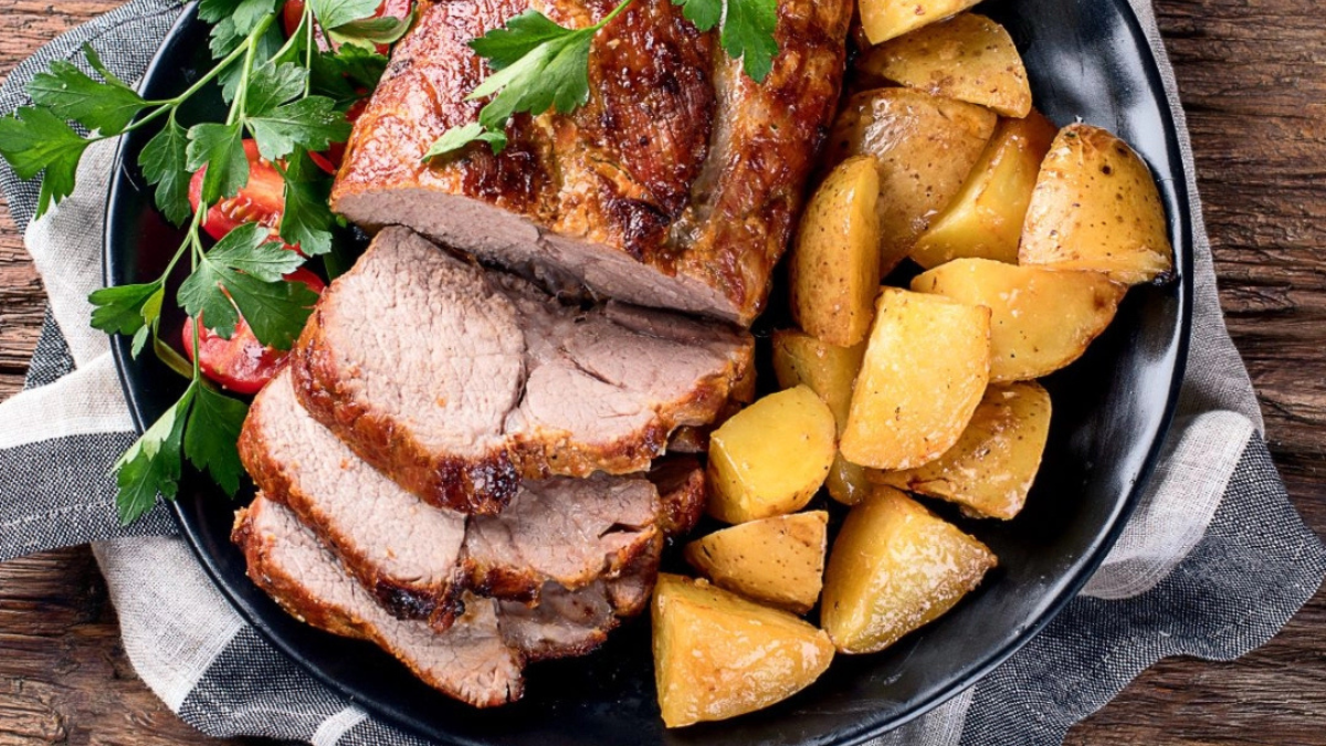 Домашнюю буженину подавай с печеным картофелем, кашами или овощами. В холодном виде она хорошо подходит для бутербродов и мясных тарелок.