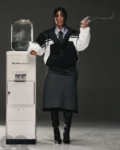 Кстати, на обложке GQ крошка позировала в костюме легендарного бренда The Row, рубашке Brioni и с пачкой чипсов Cheetos в руках.