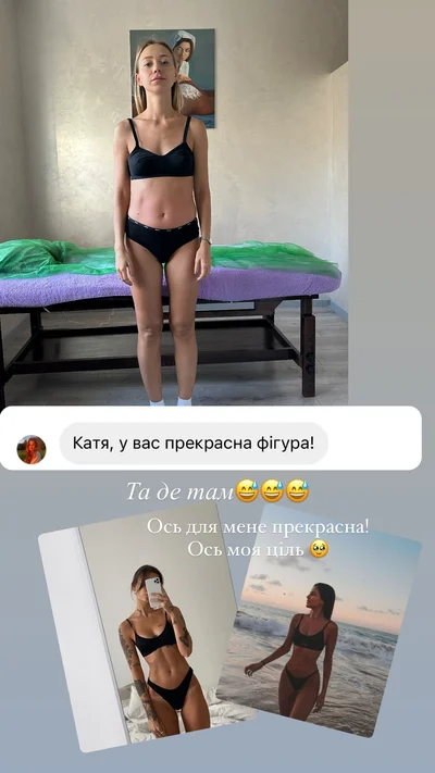 Как призналась Катя, после беременности у нее увеличились бока и живот. Избавиться от жирка в этих зонах можно за счет правильного питания, но у девушки такой безумный график, что соблюдать здоровый режим питания сложно, так что пока она ограничилась спортзалом.