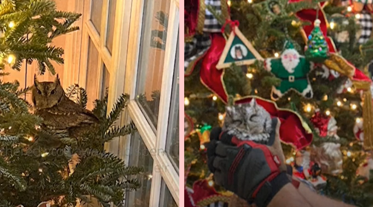 Елка с сюрпризом: семья из США нашла сову, которая спряталась в их праздничном дереве