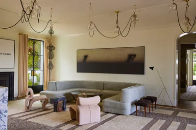 Интерьер был вдохновлен периодом, когда Пэлтроу жила в Великобритании со своим бывшим Крисом Мартином. Кстати, обои в гостиной звезды были расписаны вручную художниками. Вот так заморочилась.