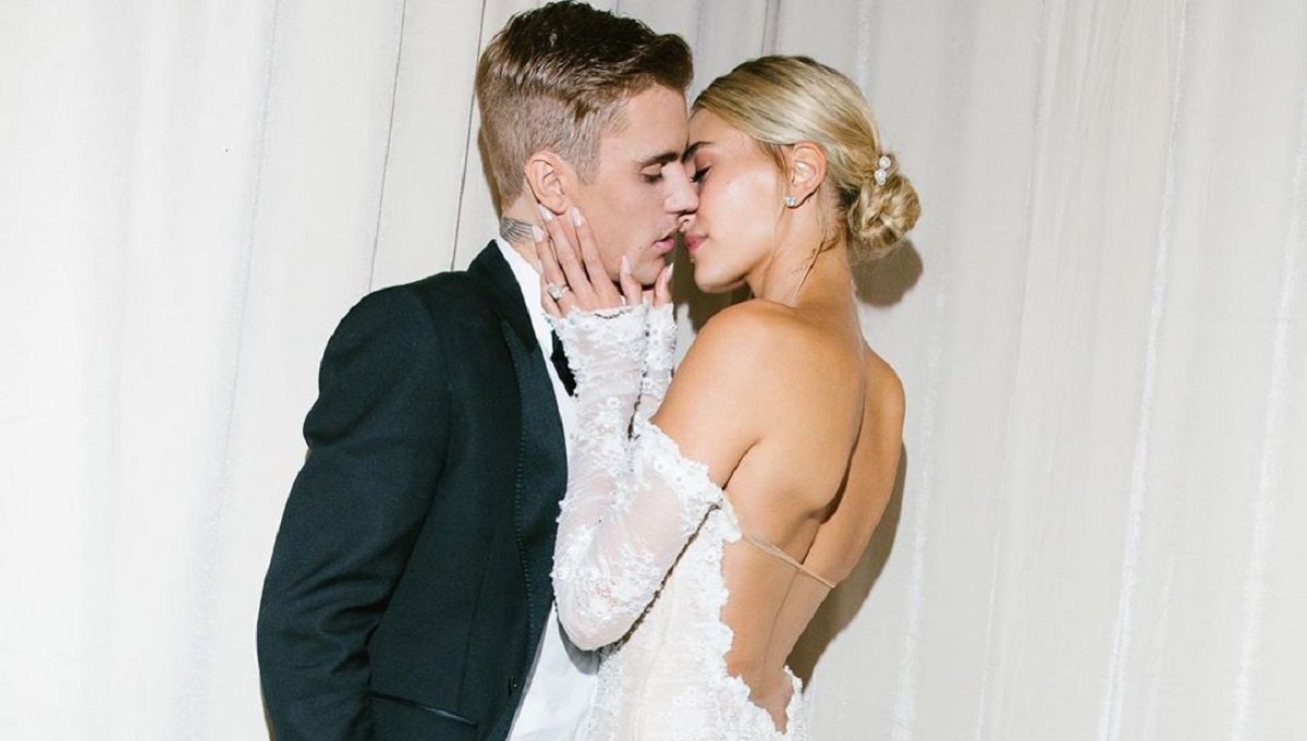 Хейли Бибер поделилась фото со свадьбы, на которых можно увидеть ее роскошное платье