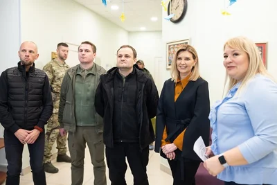 Для встречи по реформе школьного питания в Киевской области Елена Зеленская надела брючный костюм и рубашку. Удобный сет для осенней погоды не выглядел банально благодаря силуэту и цвету.
