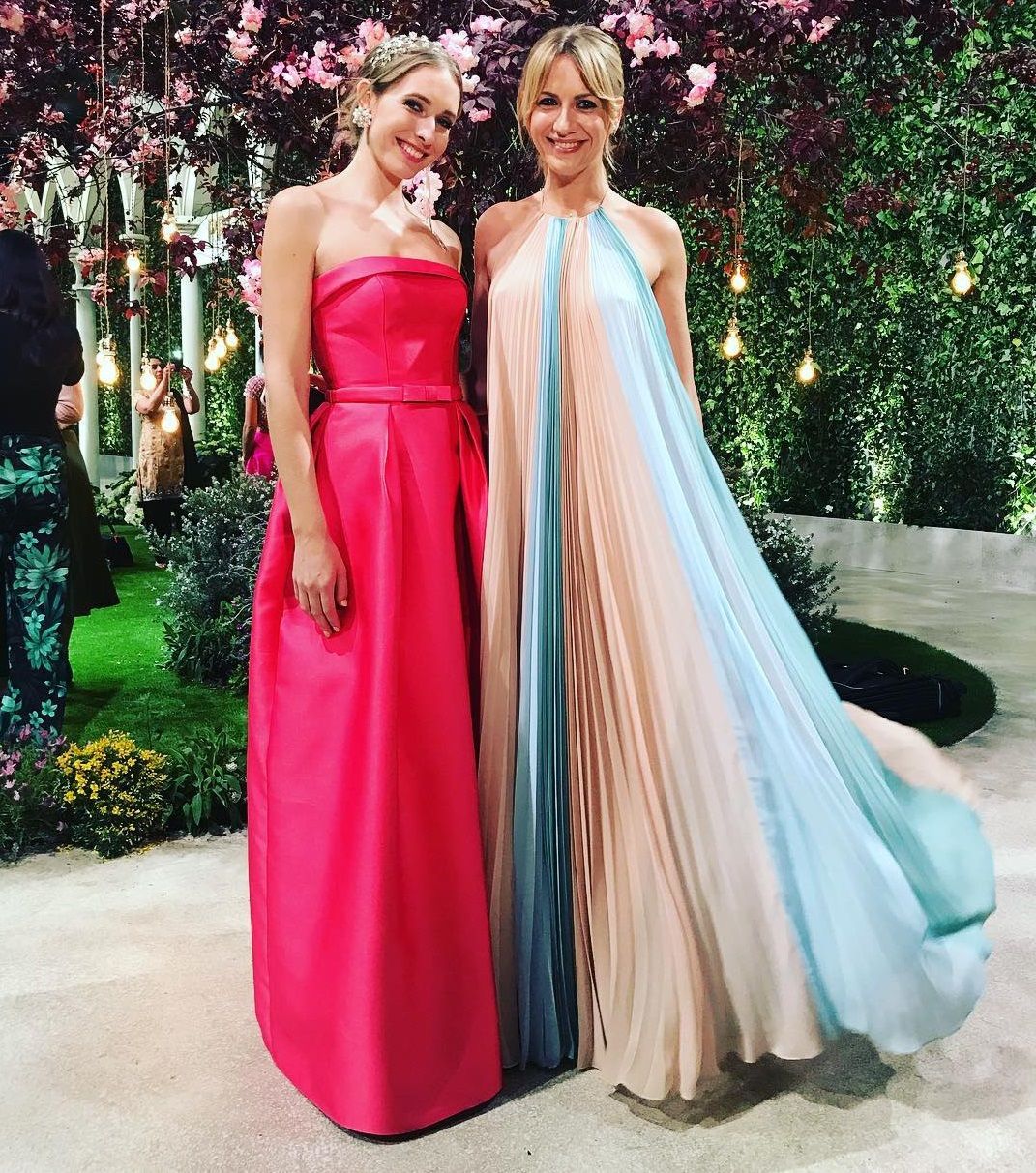 А Леся Никитюк решила покорять Барселону в плиссированном платье пастельных оттенков с открытыми плечами. Чтобы добавить "луку" романтичности, свои волосы блондинка собрала в хвост.