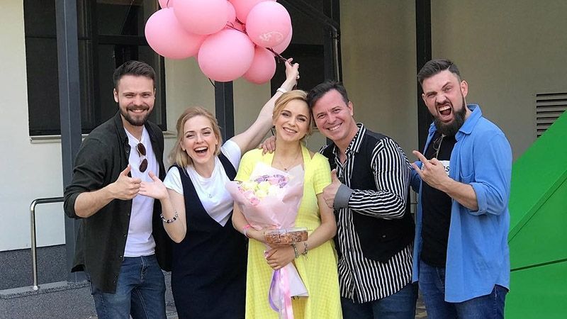 Выписка Лилии Ребрик и Полины Дикой превратилась в настоящий семейный праздник. Поздравить телеведущую приехали ее друзья, кумовья и родители.