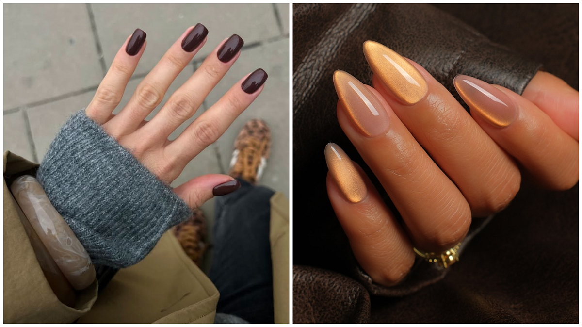 Мерцающее золото и темный шоколад - 5 трендов маникюра, которые ты захочешь попробовать этой осенью 2025