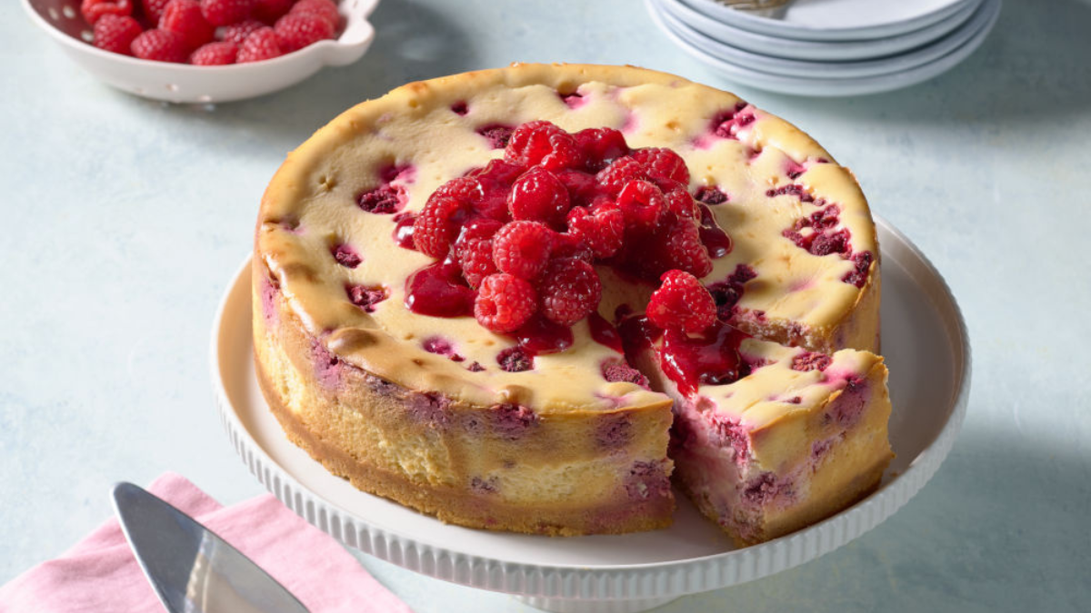 Творожный пирог с малиной – это нежный, влажный десерт с приятной кислинкой и свежим ягодным ароматом. В его основе – кремовая творожная масса, что запекается на хрустящей основе из печенья. Малина добавляет яркости, разбавляет сладость и красиво выглядит после выпекания. Почти как ягодный чизкейк, но с выпечкой.