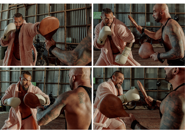 Для обложки Джейсон позировал без верхней одежды. Фотосессия проходила в спортзале, где занимается 43-летний красавчик. Также Момоа провел экскурсию по своему дому в Австралии.