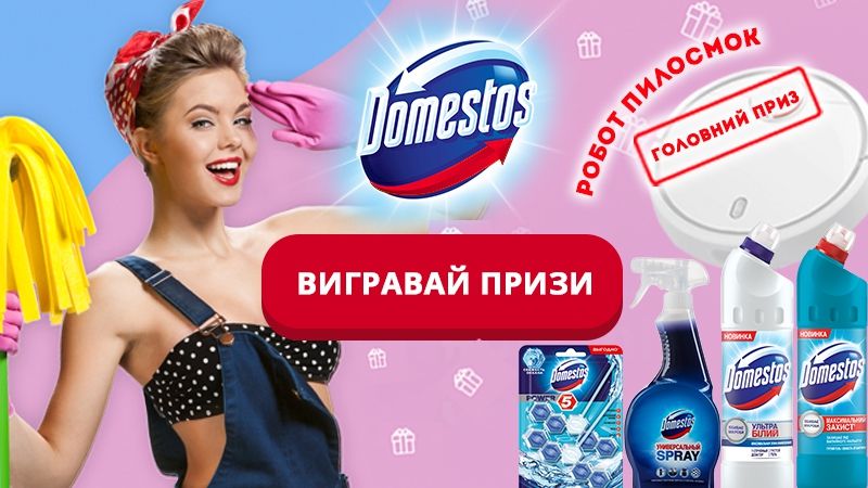 Убирай и выигрывай! Убирай вместе с Domestos и участвуй в розыгрыше робота-пылесоса