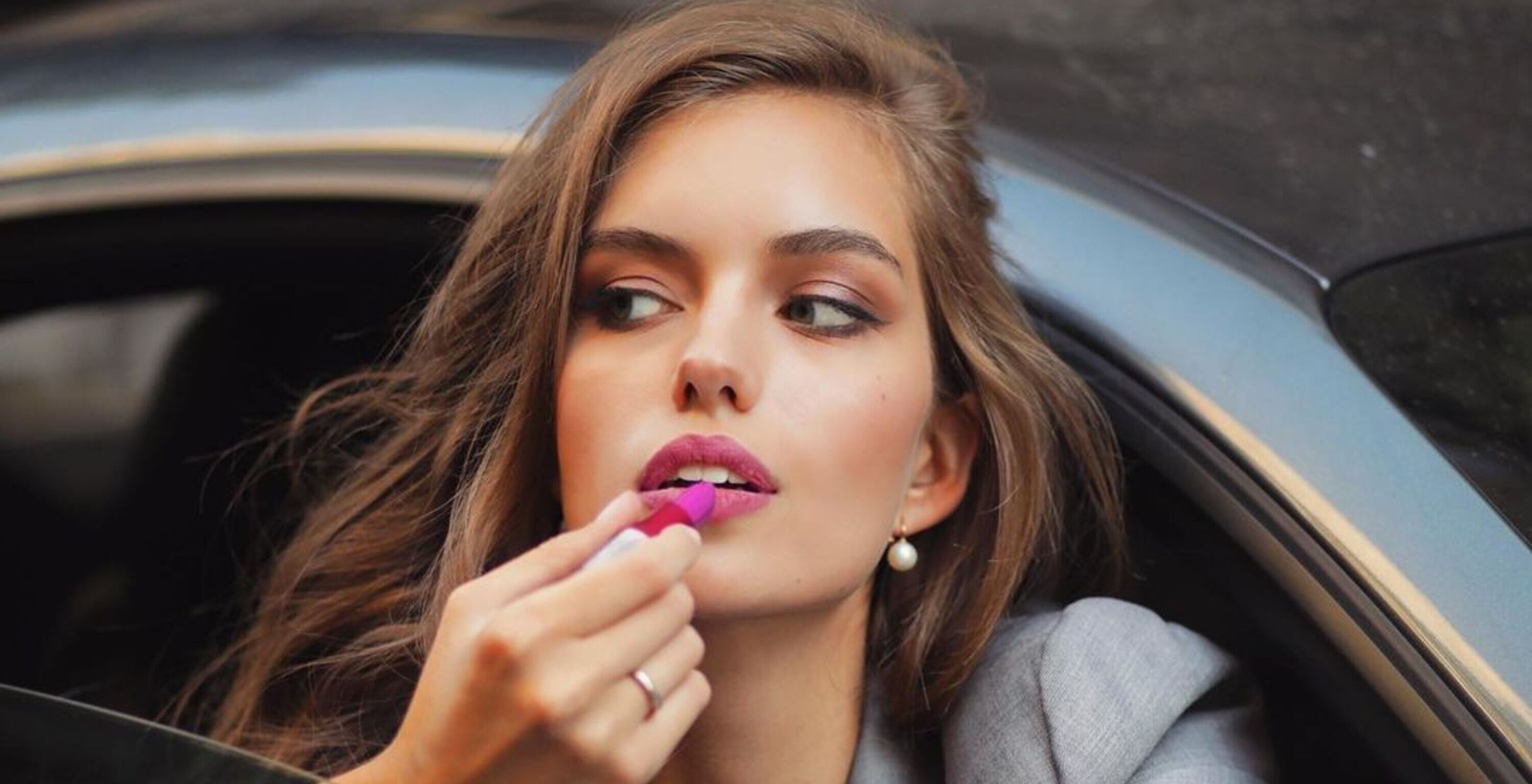 Интересно, что кроме асимметричного черного лука и волнистой укладки внимание приковывает необычный мейк - акцент на синих бровях. Стилист круто знает свое дело – они хорошо дополняют общую картинку.