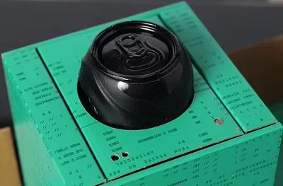 Банка пиво покрита товстим шаром чорного матеріалу, який на дотик трохи нагадує тверду гуму.