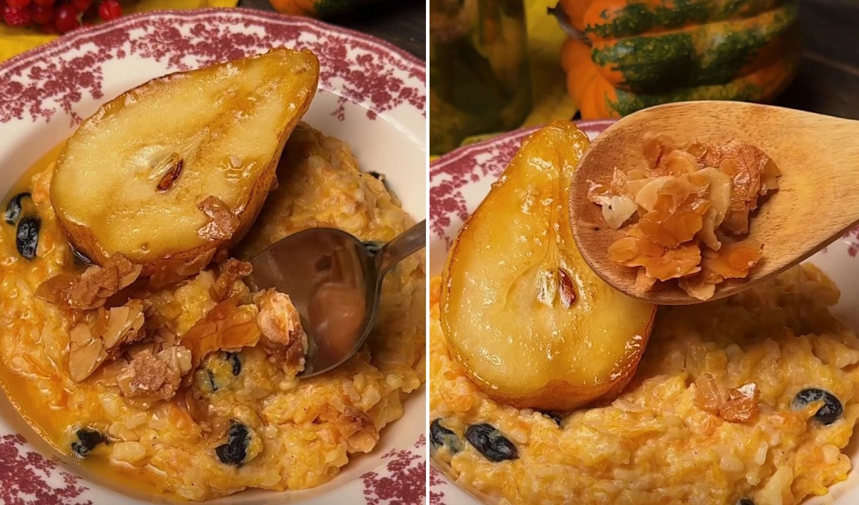 Смак дитинства: солодка гарбузова каша з карамелізованою грушею