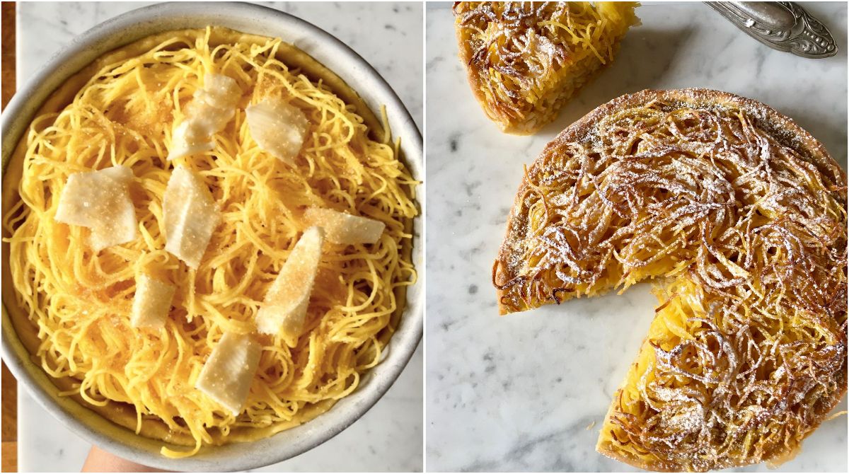 Це південноіталійська страва, яку готують із вареної пасти та солодкого крему – бабусин макаронний пиріг справді приносить задоволення. Основою десерту є паста тальоліні – тонша версія лінгвіні, але також чудово підійдуть спагеті, лінгвіні або трохи товстіша супова локшина.