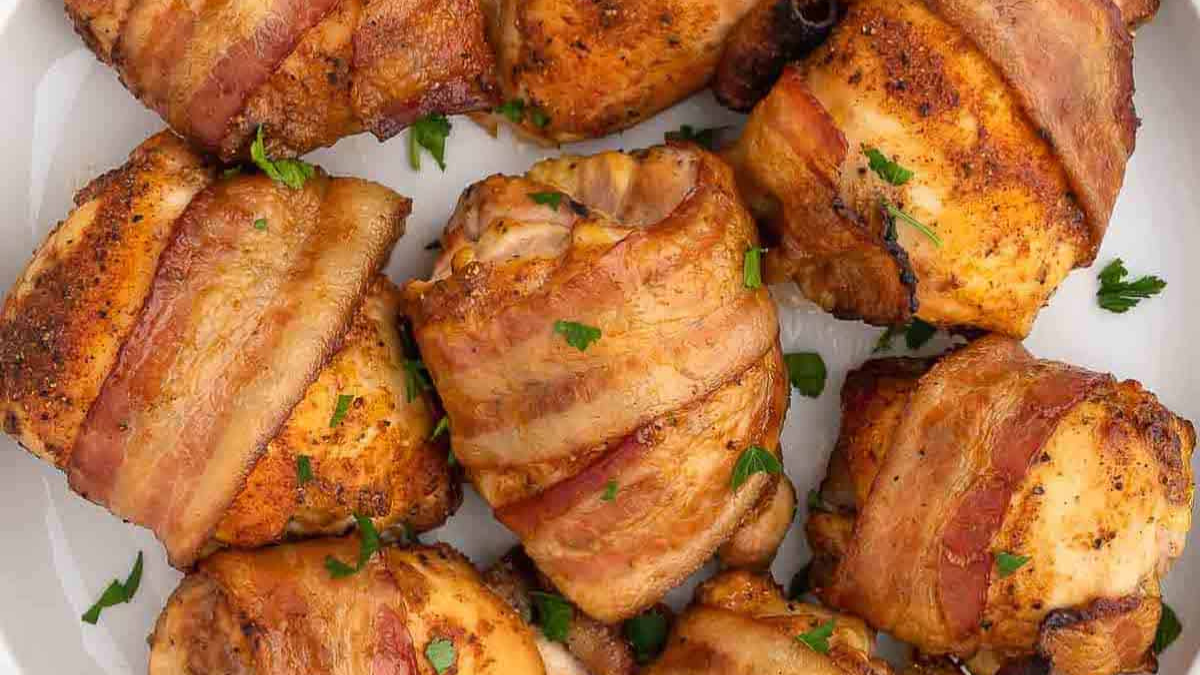 Стегенця в беконі – це ніжне куряче м’ясо, яке під час запікання залишається соковитим, а бекон огортає його жирком, створюючи ароматну скоринку. Страву легко готувати – вона підходить для будня, святкового столу чи перекусу, виглядає ефектно й завжди заходить гостям.