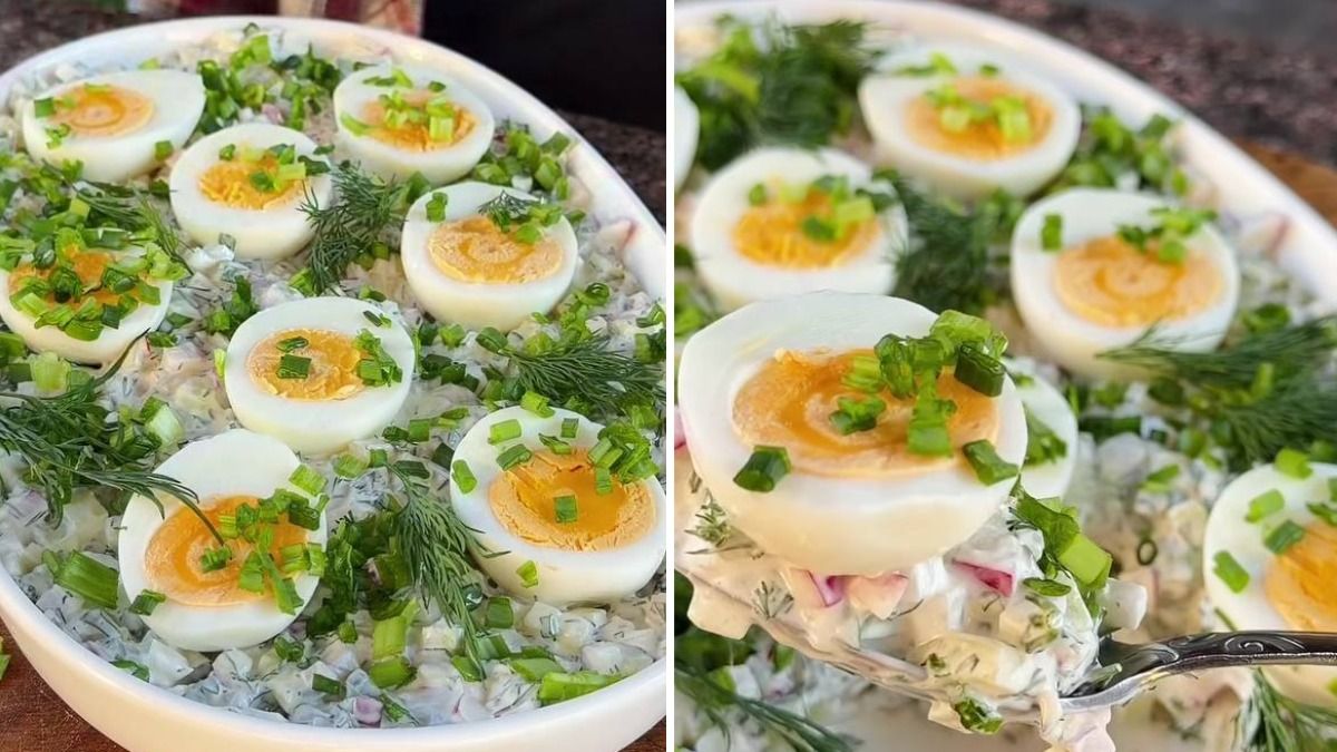 Цей салат від Ольги Рябенко – ідеальний варіант для святкового весняного столу. А ще – це маленький лайфхак, куди подіти "зайві" крашанки.
