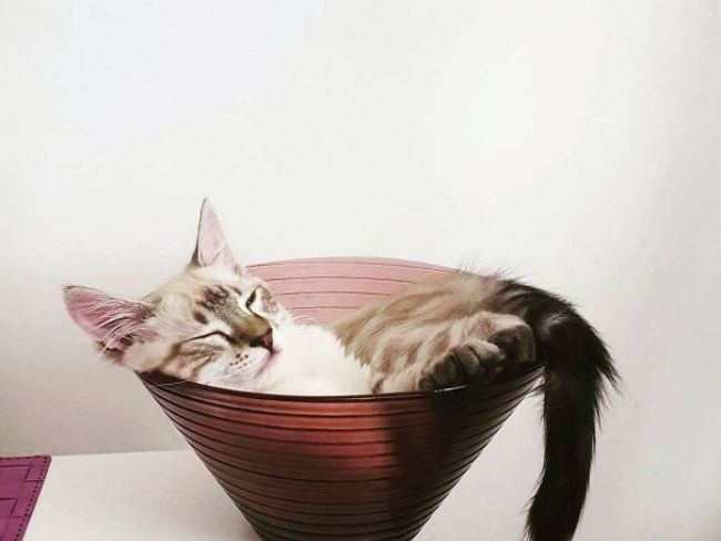 Коти вже багато років доводять людям, що можуть спати де завгодно і як завгодно. На дверях, під диваном, на рослинах, стоячи та у дивних позах. У котів свої уявлення про комфорт. Ми не втомлюється захоплюватися цими винахідливими пухнастиками.
