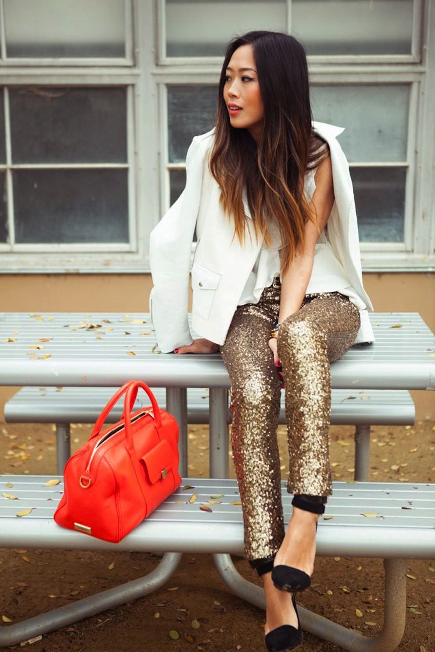 Блеск и пайетки - это хороший способ принарядиться для ночной вечеринки или выхода в свет. Но все чаще такая одежда становится элементом нашего повседневного стиля. Смотрите, как надеть штаны с пайетками, чтобы при этом не напоминать диско-шар.