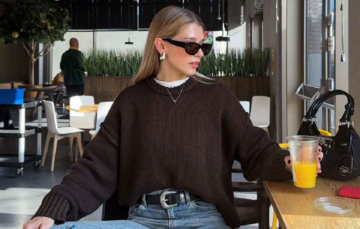 Якщо хочеться легкості, бери курс на спорт-шик: об’ємне худі, светр чи бомбер ідеально збалансують стриманість штанів. Коричневий низ додає образу глибини, а верх — комфорту. Доповни все білими кедами чи грубими черевиками — і маєш ідеальний міський образ.