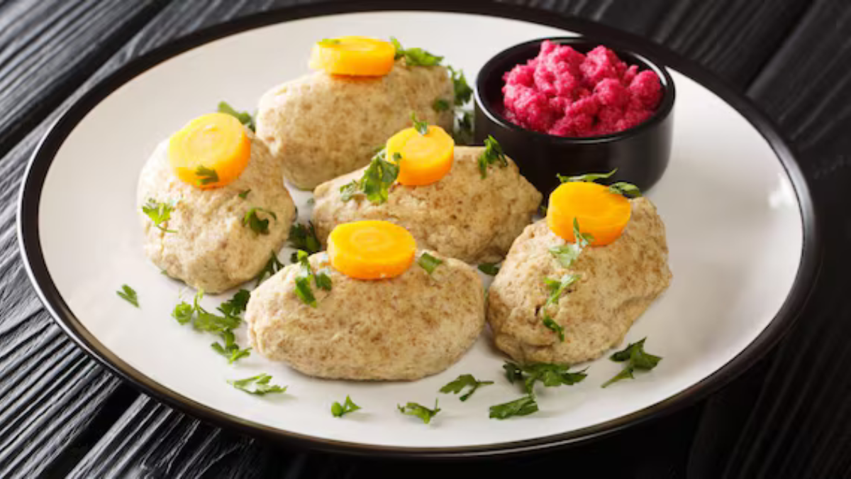 Риба по-єврейськи – це традиційна холодна страва з філе щуки або коропа, овочів і ароматного бульйону. Її особливість у тому, що після варіння риба застигає в ніжній желеподібній заливці, утвореній природним колагеном із рибних кісток. Має м’який, делікатний смак і легку солодкість, яку додають морква та цибуля.
